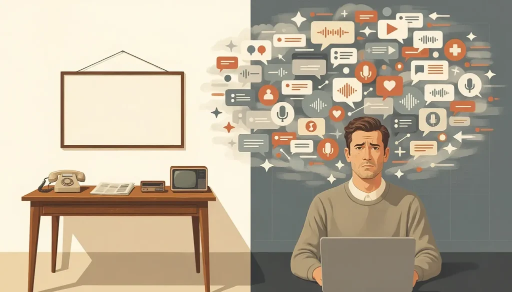 Scarcity once made media choices simple; now abundance without structure freezes founders.